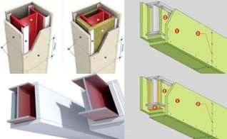 The installation complexity of different board systems varies greatly. Whereas some boards do not offer much integrity during fire exposure and need extensive supporting constructions (metal rails, clips, screws or glue) and joint treatments (joint filler, joint bands or skimming compound) and often multiple layers, other boards are more resistant and can be directly staple-fixed around the steel section, with (wedge) noggins or, in the case of columns, just a simple box.
